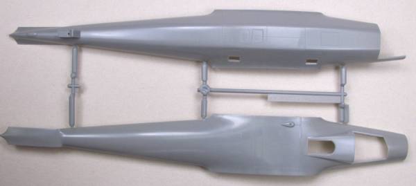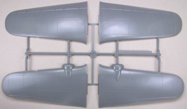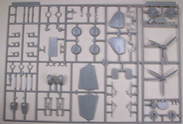 The Hobbycraft Do 17M/P comes in a large top open two part box that is much larger than needed. The artwork on the box is as uninspiring and inaccurate as the kit itself ! Inside the box there are two bags containing all the parts including the clear parts which would be much better off if they were bagged separately but in my case I won't be using them anyway so it doesn't matter. The parts are molded in a light gray plastic with recessed panel lines. The surface is smooth and I found no surface defects on the major airframe pieces. Flash is minimal and some of the small parts have a moderately heavy parting line to deal with. Like the Do 17E/F kit the fuselage is split top and bottom and the kit is essentially identical to that kit except for some items. The upper wing halves are different as they need to mate with radial engines as are the cowlings and engine nacelles. The radial engines are not particularly well done with a separate pushrod assembly that is a bit too large. Unlike the E/F kit this one provides bulkheads in the nacelles for mounting the landing gear but the whole arrangement is rather shaky. All of the comments \ accuracy in the Do 17E/F review found here, apply to this kit as well. I wish I could say something good about the kit but I'm hard pressed. Fit isn't all that bad and it does feature alignment pins so from that standpoint its better than many short run kits. Altogether there are 88 parts in gray although some of the parts are carry overs from the E/F kit and are not used. See photos below.