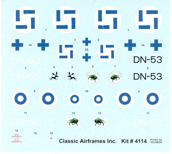 with painting and marking detail for the three aircraft on the decal