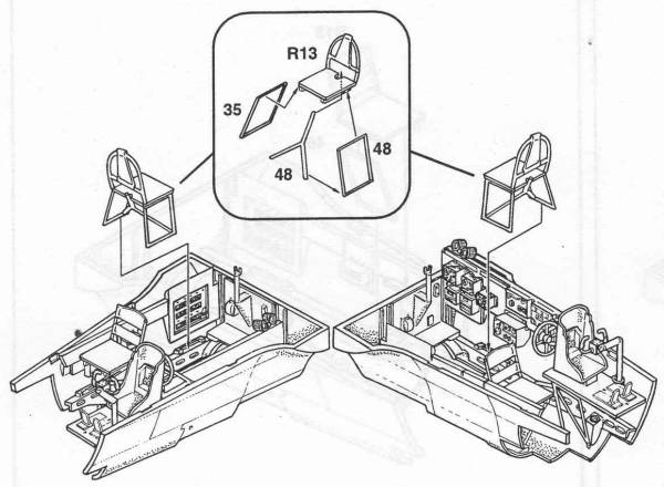 parts consisting of the two engines, cockpit seats, cockpit side panel