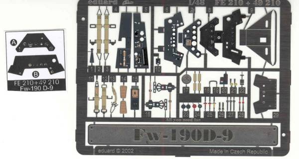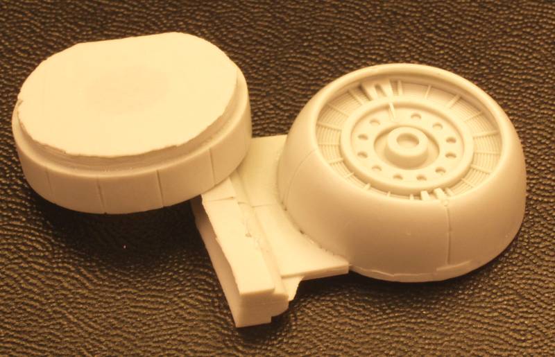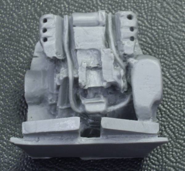 Next up is an engine plug from Parts-R-Parts [PRP-003] this is a detail omitted from most of the 1/48 scale models of the D9 and represents the back end of the engine on the D9 which can be seen in the wheel wells. This was done to improve cooling while on the ground. The part is molded from a gray resin and has moderately sharp detail of the rear of the Jumo engine and some of the other associated parts such as the tank for the coolant. To make it look better it still needs a couple of pipes added. The holes on the part shown in the photo below need to be filled and they are on the engine rocker covers. Once painted up and the additional pipes installed it should improve the looks of the this portion of the model.