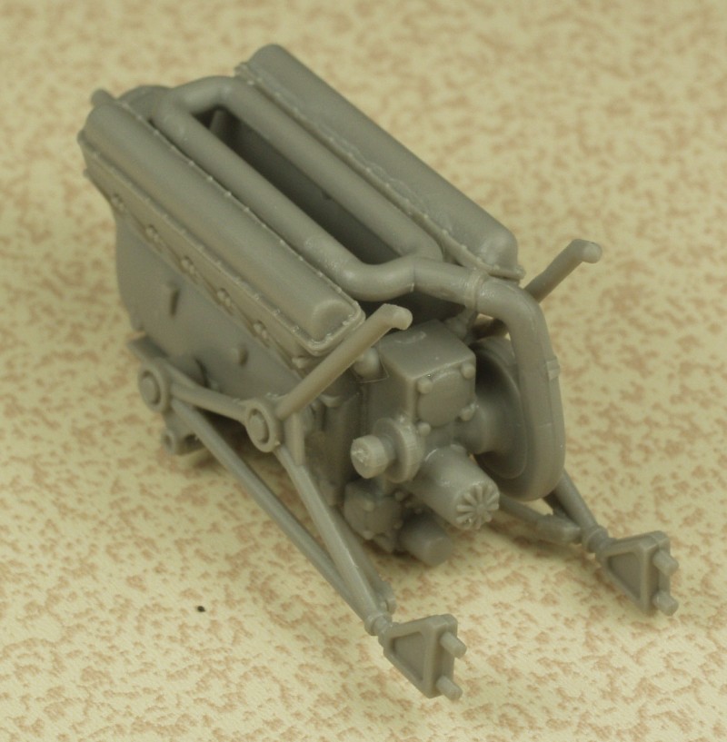In some what of an unusual move I started by building up the engine assemblies. I will not be displaying these so very little time was spent cleaning up seam lines and the like. I just wanted to get a feel for the fit and finish of the smaller parts of the kit. The only function these will serve on my build will be a place to hang the propeller so only the block with the prop shaft and the engine mounting brackets needed to be used. I was quite impressed with how they fit together and the detail level shown. A little bit of wiring and piping and a bit of paint would turn these into real jewels.