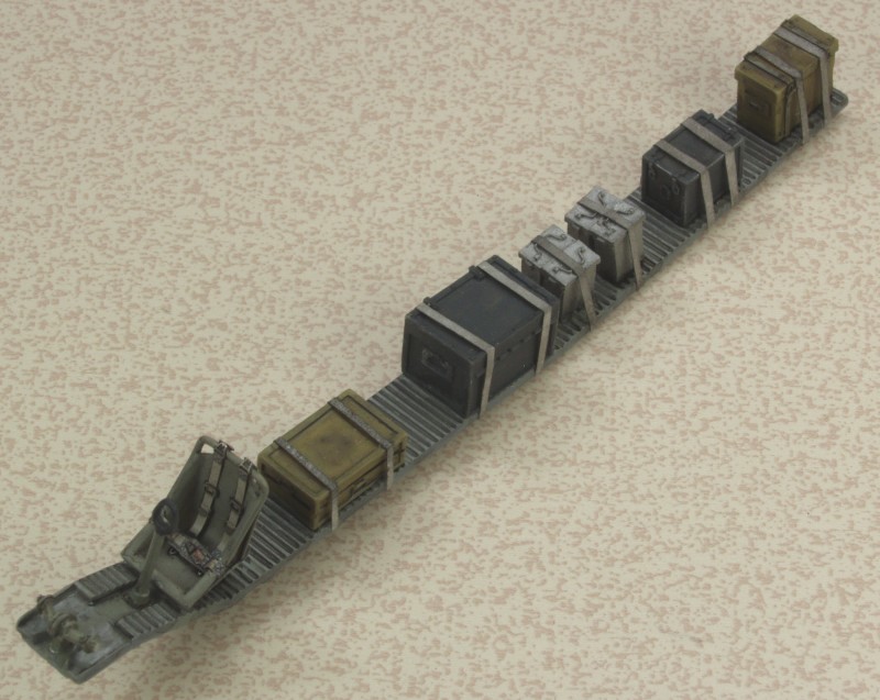 As is the norm the place to start is inside. After reading about how fiddly the seat assembly was and not looking forward to cleaning up and assembling all the seats I decided to do mine hauling freight. This was commonly done especially on the eastern front when travel by roads became problematic due to rains and spring thaw. I found some crates and other items intended to be used as stowage on vehicles and attached that to the floor. Way more fun than assembling seats.