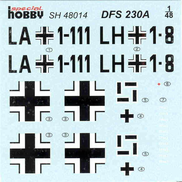 The decals provide markings for two aircraft. They appear thin and are in register. See below.