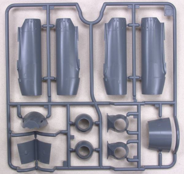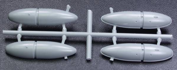 So lets first look at the stock Tamiya kit. The kit comes in a top open two part box with nice artwork on the front. The kit I chose also comes with the Kettenkraftrad that they include in a number of kits and one can never have too many of them. Inside the box there are six bags, each containing one sprue. In my opinion the best way to package kits to prevent damage to parts. The parts are molded in a dark gray plastic with a smooth glossy finish and virtually no flash. The panel and fastener detail is recessed and nicely done. In looking over the main airframe parts I found no surface defects or irregularities. There is a small parting line to clean up on the smaller parts. There are also ejector pin marks on the inside of the landing gear doors and a few other locations that will show when the model is finished but most are light and not that noticeable. The fuselage and engines are unusual in that they have structural detail over their entire inner surfaces. This is a result of he same dies being used to produce the transparent version of the kit. The kit supplies separate parts for the gun access doors so that they may be displayed open or closed. This particular kit does not include complete engines, just the intake and exhaust parts but since it is the bomber version it does include the under fuselage racks for bombs which will be used for drop tanks on the night fighter version.