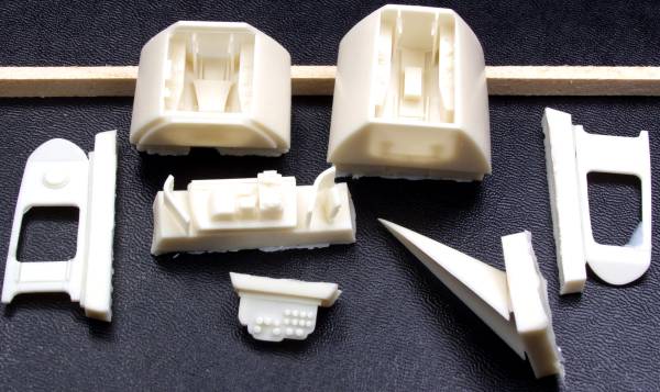 The other bag contained the balance of the resin parts. These had a bit more flash but were still of good quality. One of the supplied sticks was broken but only one is needed for my modification. The radar antenna mounts need to be straightened a bit but that should present no problems. See photo below.