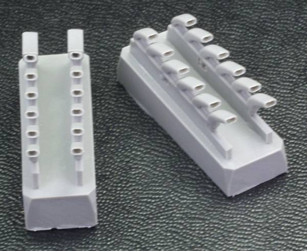 Next up are a set of exhausts from Quick Boost [48049] these are very nicely cast in gray resin and have hollowed out ends which saves the time one would spend hollowing out the kit parts. See below.