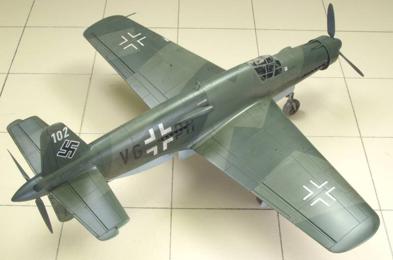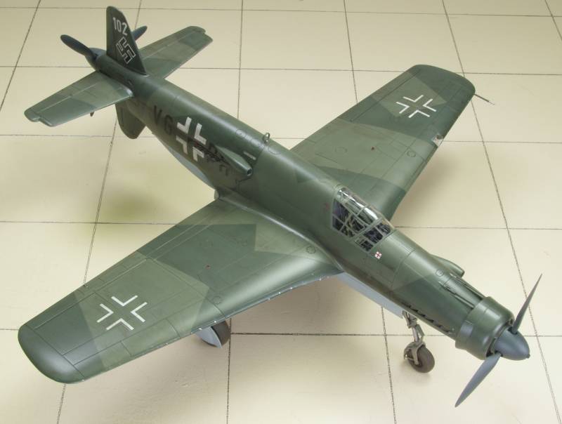 It took a while but I finally got around to finishing this build. After reading about Hans-Werner Lerche's flight to return this aircraft to the Dornier Works at Oberpfaffenhofen from Rechlin I decided to use the markings supplied in the kit. I did go against the convention of using the late war bright green and brown violet since it had been documented that the aircraft wore two shades of dark green during the war. In spite of this information, Dornier used the late war colors when they refurbished the aircraft. My choice was 71 dark green and 83 green, the darker of the late war colors. This gave a lower contrast between color that seemed closer to the way the aircraft looked in war time photos. The photos below show the completed aircraft.
