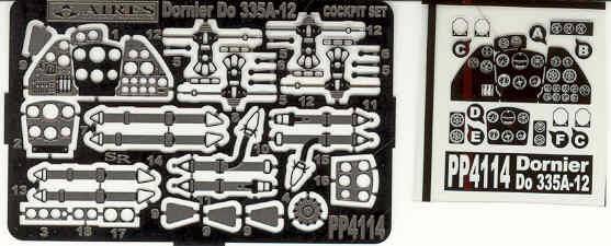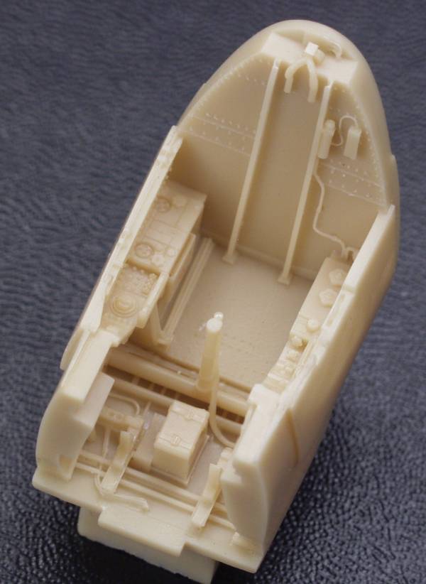 The set also includes a photoetch fret with instrument panels for both positions, seat belts and harnesses for both positions, rudder pedals for both positions throttle levers for both positions and a trim wheel and for the pilots pit. The instrument panels use a film for the individual gauges. See below.
