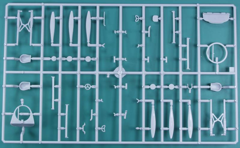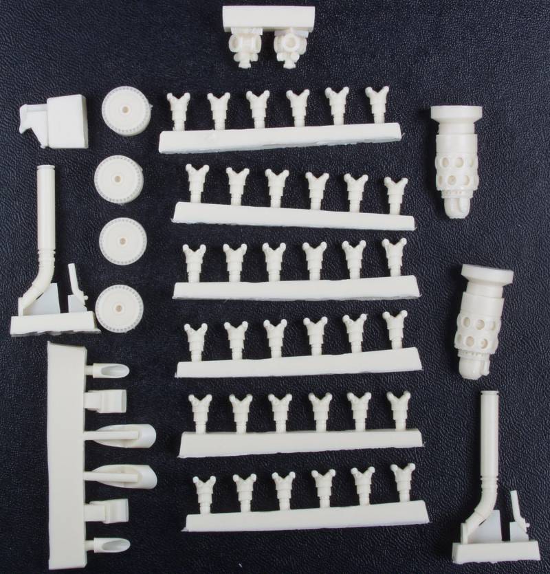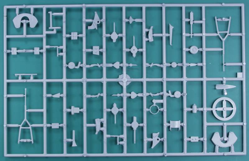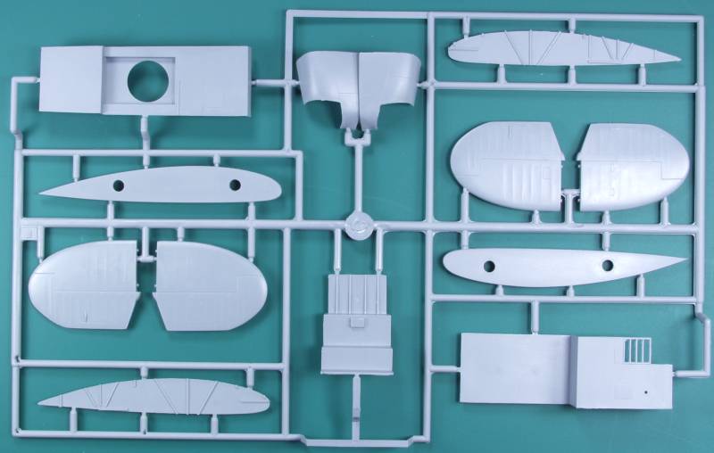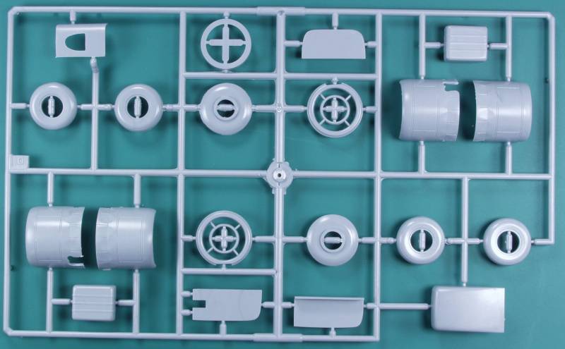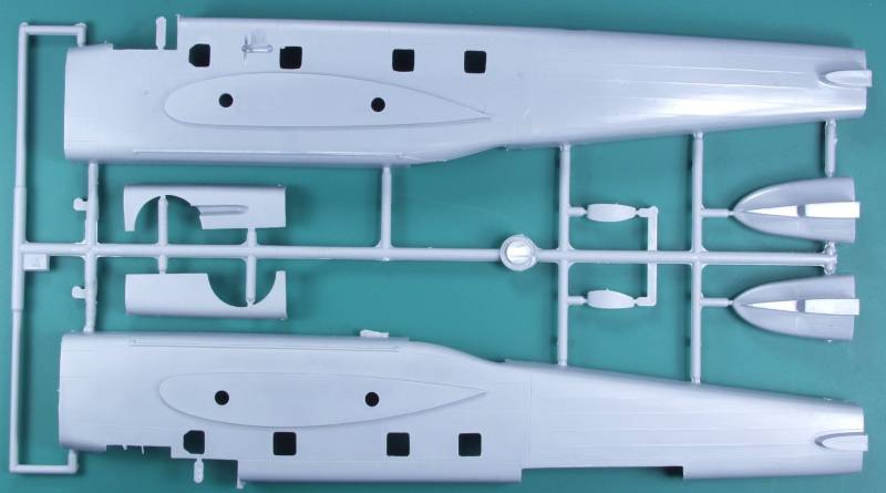 The resin parts are nicely cast and I found no obvious defects on any of them. Included are the propeller hubs, wheel hubs, engine crankcase and cylinders, engine exhausts, bombardiers seat and some other interior parts.