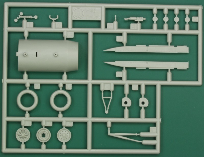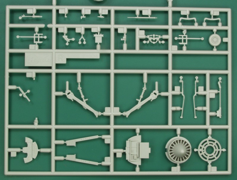 The next one includes the landing gear parts, instrument panel, nose wheel, exhaust turbine and flame holder.