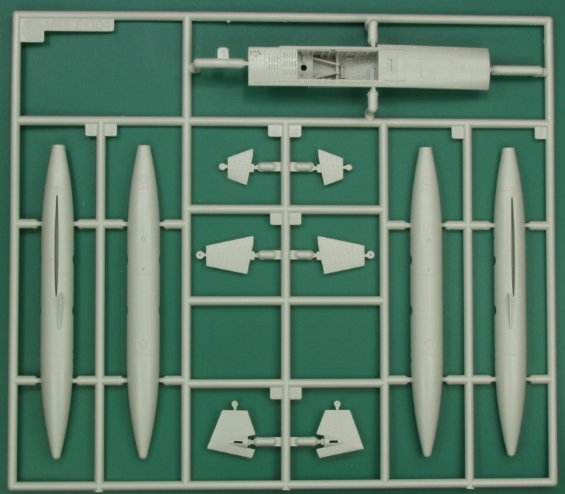 The next one has the cockpit tub, tail feathers, and main gear bay parts and some other parts as well.