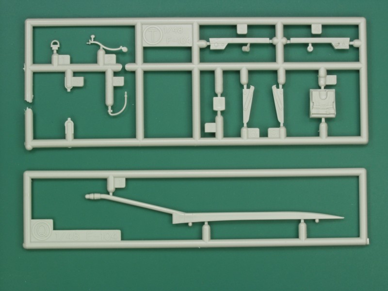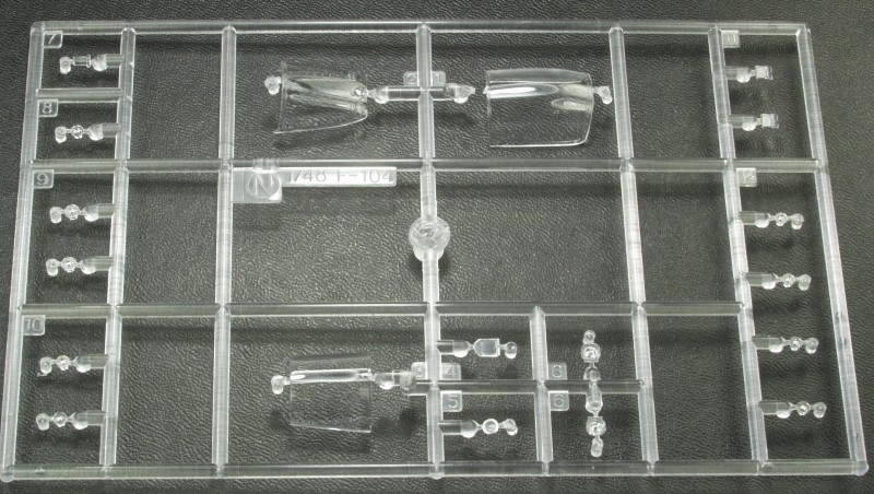 The Hasegawa F-104C comes in a conventional top open tray style box from thin cardboard and features nice artwork on the top. I purchased my kit off eBay so I can't comment on how the kit was packed when new. All the sprues with the exception of the clear parts were not bagged and a number of parts had come off the sprues. Fortunately none appear to have suffered any damage. The kit is molded in a light gray color and features recessed panel lines, rivet and fastener detail with some raised detail where applicable. The kit is virtually flash free, not bad for a kit that was released 15 years ago.