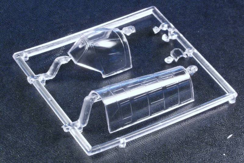 The clear parts are about the norm for thickness and have raised frame lines which should make for easy masking. They are reasonably clear but both had a bit more distortion than I would like. a dip in Future may help some. With all the nice cockpit detail to see a vacuform replacement would be nice. Landing light lens and wingtip formation light cover are also supplied. see below.