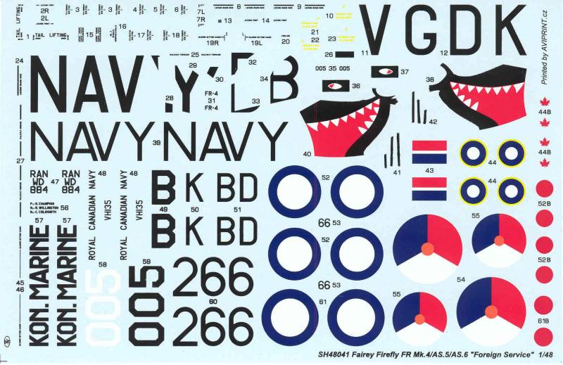 The decals are thin and glossy with little excess film and appear to have good opacity. The sheet supplies markings for three aircraft, One from the Dutch Navy, one from the Royal Australian Navy and one from the Royal Canadian Navy. The latter two require you to stack decals for the wing and fuselage roundels choosing either the red spot or maple leaf depending on the country want. A goodly number of stencils are supplied and registration and clarity of printing is good. See below.
