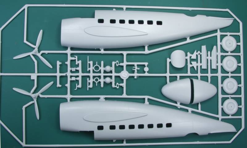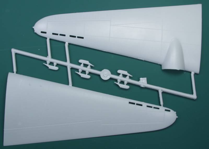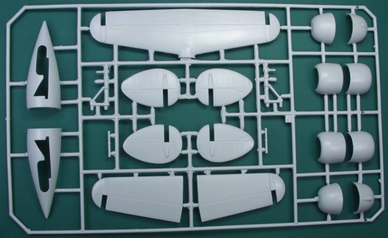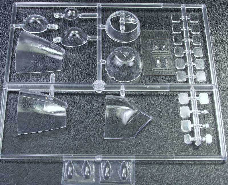 The clear parts were all reasonably clear, the frame elements on the two nose pieces were very faint which will make masking and painting less than easy but the other pieces had well defined frame lines. Two vacuformed pieces with vision blisters are provided depending on the version built. Altogether there are 36 clear parts for a kit grand total of 166 parts for the complete kit. See photo below.