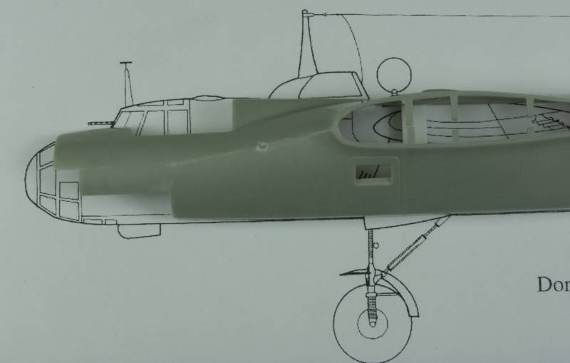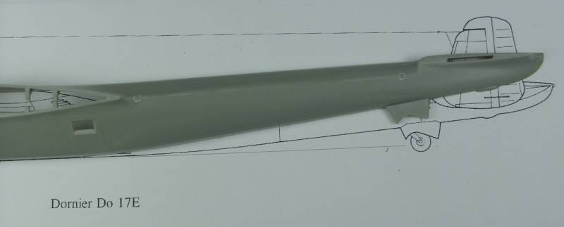 The Do 17 to me is a very attractive airplane, it was built at a time when looks were as important as function and ease of manufacturing was forfeited to provide nicely blended lines. The fuselage has a lot of complex curves and shapes and that in and of itself makes it difficult to get a handle on exactly what was causing the banana look. Hobbycraft’s choice to split the fuselage horizontally also makes it more difficult and in the end I believe is what caused the problem in the first place. In searching for information on this interesting plane I ran across a soft cover book published by Kangaro that had several 1/72 scale drawings of the E and M versions. Are these drawings accurate? Without a set of original Dornier drawings, I can't say but they certainly look like they could be when compared to photos. I scanned the E side view drawing and enlarged it to 1/48 scale. This helped but not being able to just lay a fuselage half on top of the drawing still didn't make it all that easy. Since I had several of the Hobbycraft kits available in my stash, I decided to sacrifice one for the sake of science.