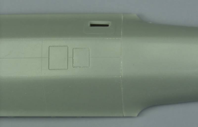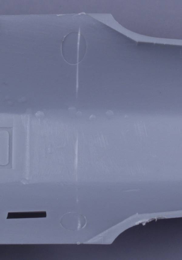 With a little filling at the ends this should end up looking pretty much like the original panel line. As can be seen, the top half fits reasonably well even though it hasn’t been cleaned up yet. There is a slight dip at the point where the panel lines meet at the bottom but I didn't feel this would be noticeable enough to try to fix, you will need to use your own judgment on that issue.