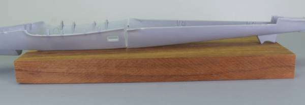 In fact the top portion of the fuselage wants to be straight and you can see this by putting the top and bottom together, holding just the ends together as seen in the photo below...