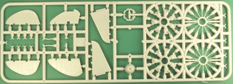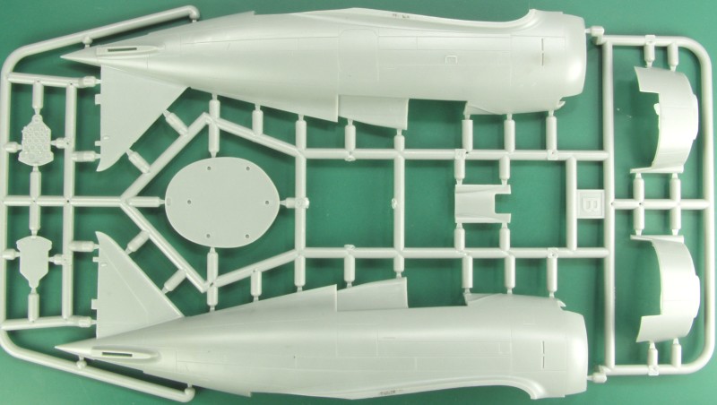 sprue B contains the fuselage halves, two rear cowling halves, the top