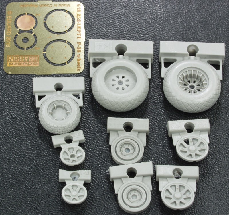 Although the kit wheels are OK I liked the look of the Eduard Brasin wheel set (648258). The set has nice tread detail and includes the manufacturers name on the tires. Again these were crisply cast with no visible defects. The photo etch provides the wheel covers if desired and the set includes masks for painting.