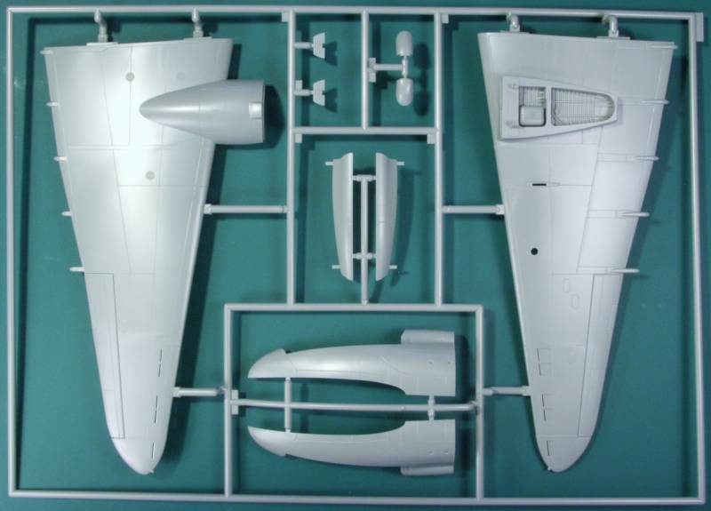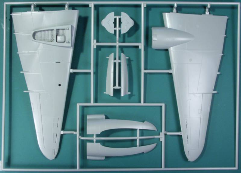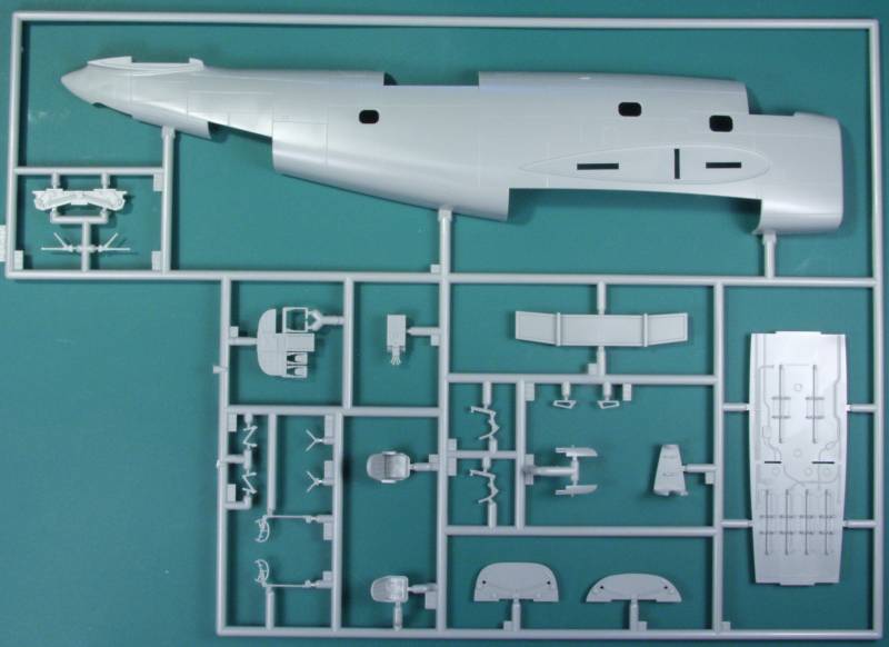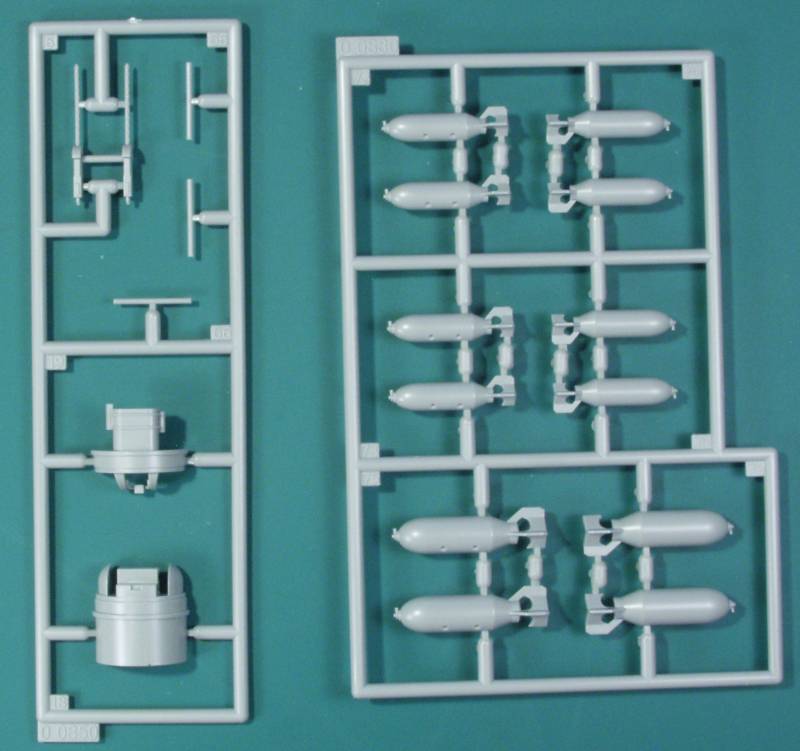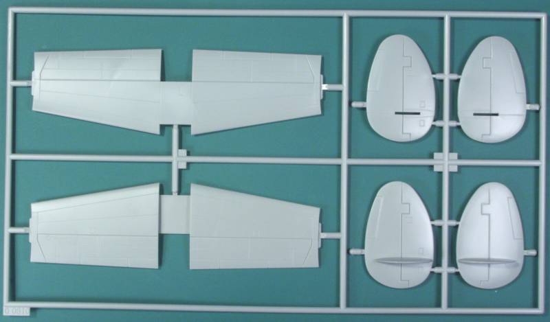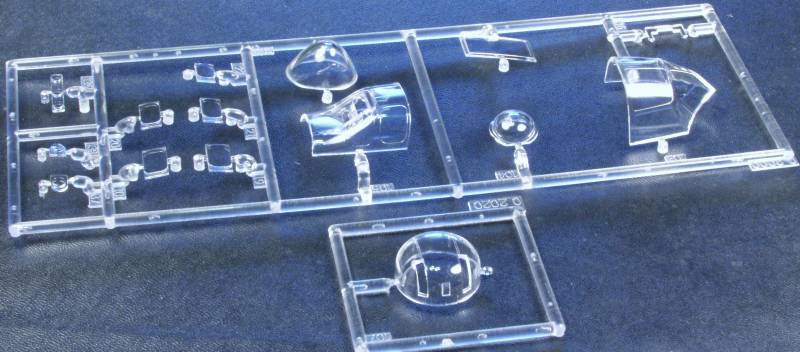 The clear parts are not as thin and clear as I would like to see but will probably look OK with a dip in Future. My canopy has what appears to be a molding defect that appears like a scratch but seems to be internal, like a hair or something got molded in. I hope a Future dip will make it less noticeable, The turret part was on a separate sprue, another hint of other variants to come but because it was loose with the other parts it did show some scuffing that will need to be buffed out. Other than the main glazing two landing lights and a piece with three formation lights are included. See below.