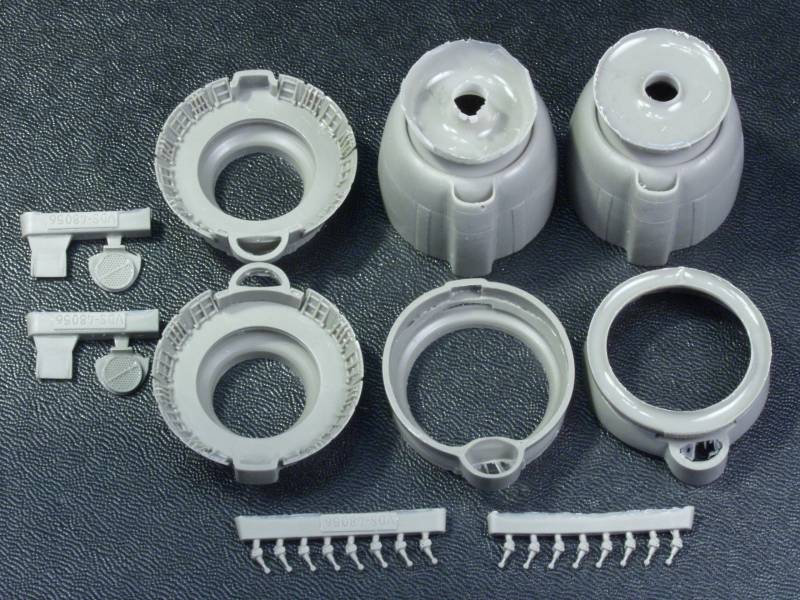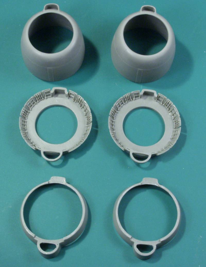 Next up was the cowling set. This was from Vector and the molding plugs had me worried that cleanup would be a bear. But it turned out that it was as easy as a light scribe around the outer edge of the plug with a tip of an X-acto and it popped right out. A little trimming and they were ready for use.