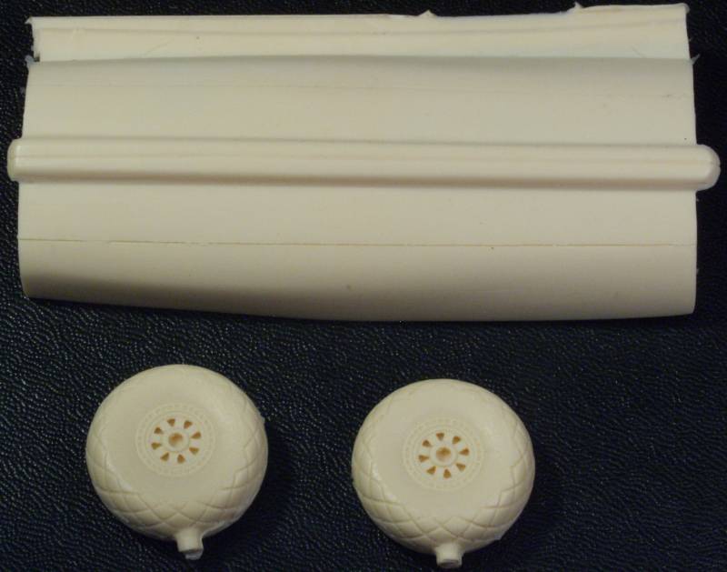 Next I wanted to deal with getting some of the other resin parts cleaned up. First the wheels, these were from Lone Star, I thought the tread looked better than the kit wheels and I hate cleaning up seams on wheels molded in halves. Also they weren't bulged or weighted so they don't look flat like True details tires often do. I did sand a flat on them to give some weighted appearance.