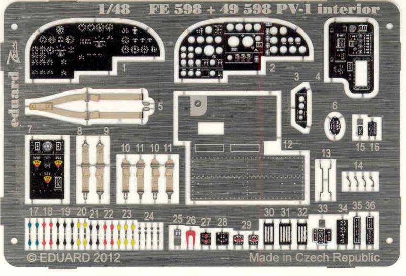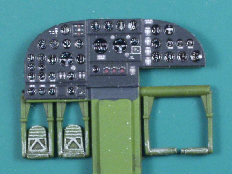 On the Eduard PE I found that with the exception of the main instrument panel, the other auxiliary panels more closely matched those in the PV-2 so I went with the kit parts for them. I have found that giving the panel a flat coat before using Future in the dial faces seems to eliminate most of the grainy effect on the Eduard parts.