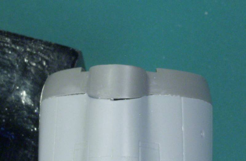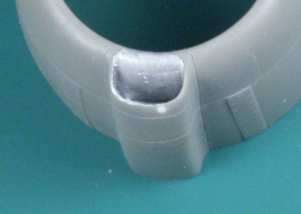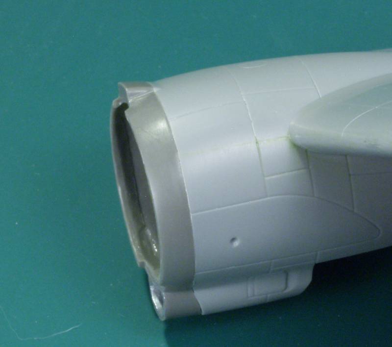 I was going to cut a wedge to fit but before attaching the first of the cowling rings I sanded the front surface on some sandpaper on a flat surface and that got rid of most of the step. Since this area was on the side facing the fuselage I decided any gap could be filled as it wouldn't be all that visible anyway. When I attached the first cowl ring I tacked it at the top then did a progressive glue around the outside. In the end it fit pretty good although I do have a bit of a step between the resin and plastic in a couple places as if the ring were slightly too small. If I had to do it again I think I would cut just ahead of the panel lines and sand down to them, then I think the ring would be just about perfect.